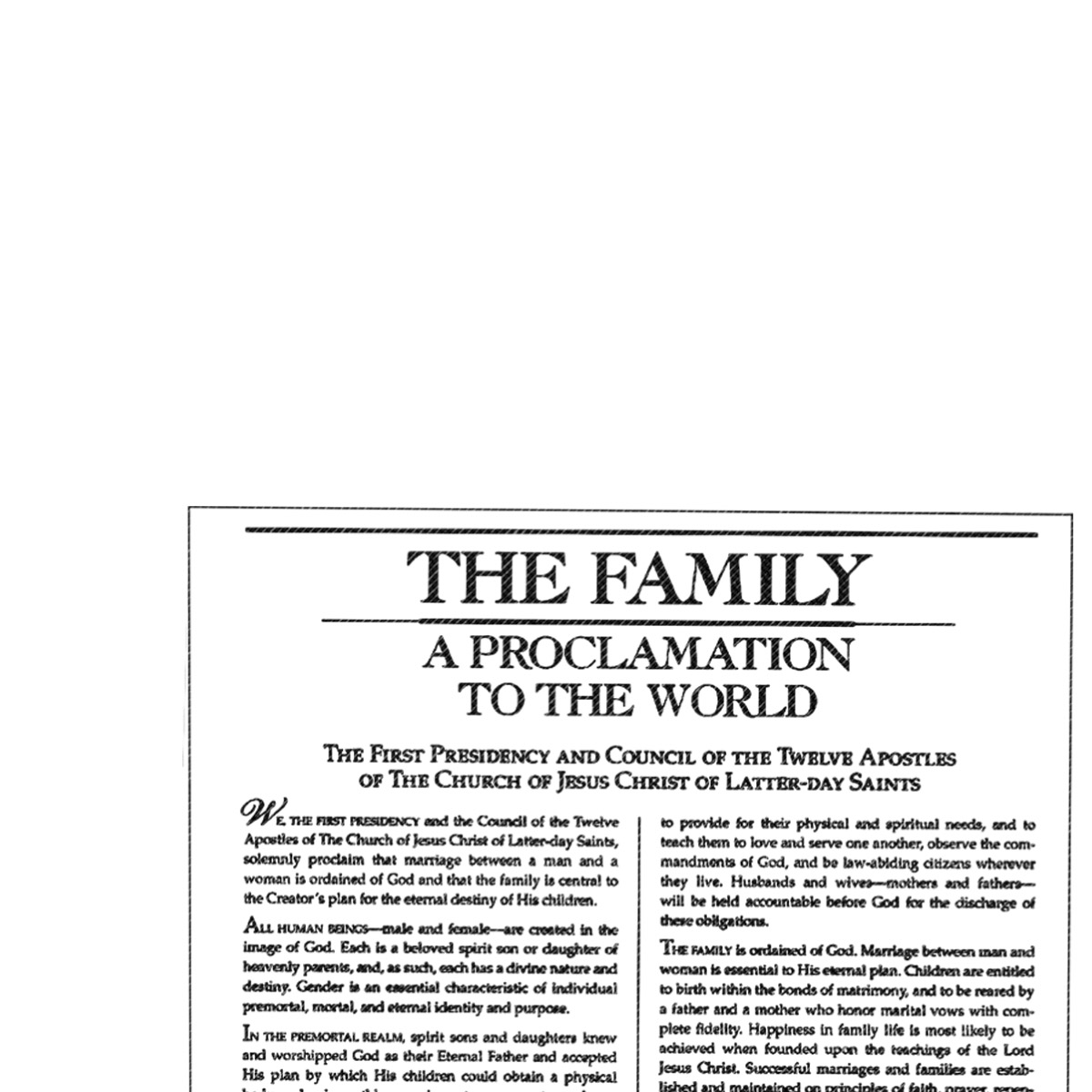 we of the First Presidency and the Council of the Twelve Apostles now issue a proclamation to the Church and to the world as a declaration and reaffirmation of standards, doctrines, and practices relative to the family which the prophets, seers, and revelators of this church have repeatedly stated throughout its history.