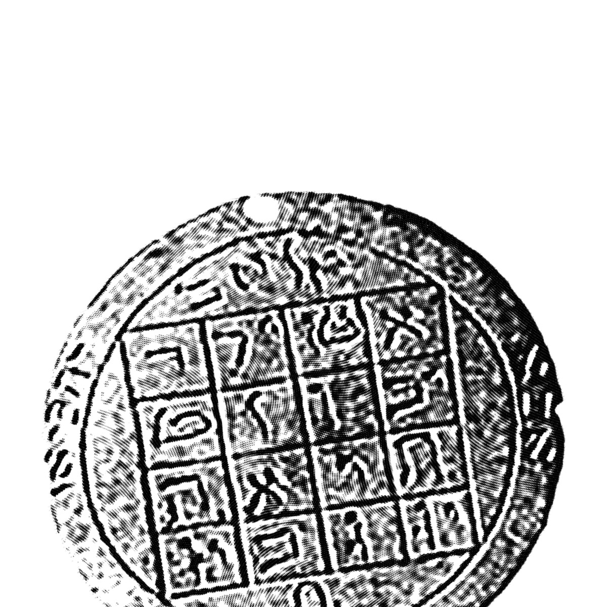 The design of the type of Jupiter talisman that Joseph possibly owned originated in an 1801 book about occult philosophy, magic, and Christianity.[12] The one Charles Bidamon[BIO] said belonged to Joseph Smith was probably a silvery, metal disc[13] with a Hebrew number table on one side and astrological symbols on the other.[14]