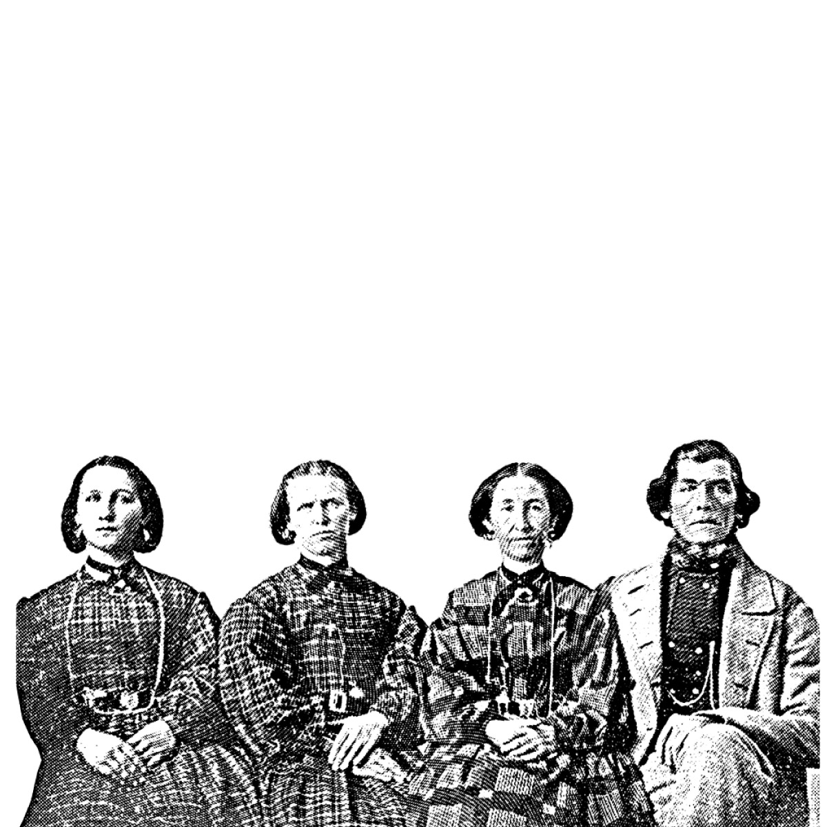 A 1872 engraving by R. Guy McClellan depicting Brigham Young and a 'portion' of his polygamous family. Brigham Young had 56 children through polygamy.